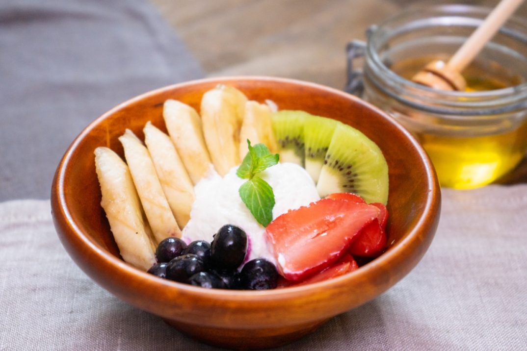 韓国カフェで大人気のスイーツメニュー。しっかりと水切りされたヨーグルトは、濃厚でクリーミーな食感が特徴で、まるでチーズケーキのようなリッチな味わいを楽しめます。4種のフルーツやグラノーラをたっぷりトッピングし、ヘルシーなのに満足感のあるデザートに仕上げました。お好みでハチミツをかけてお召し上がりください。