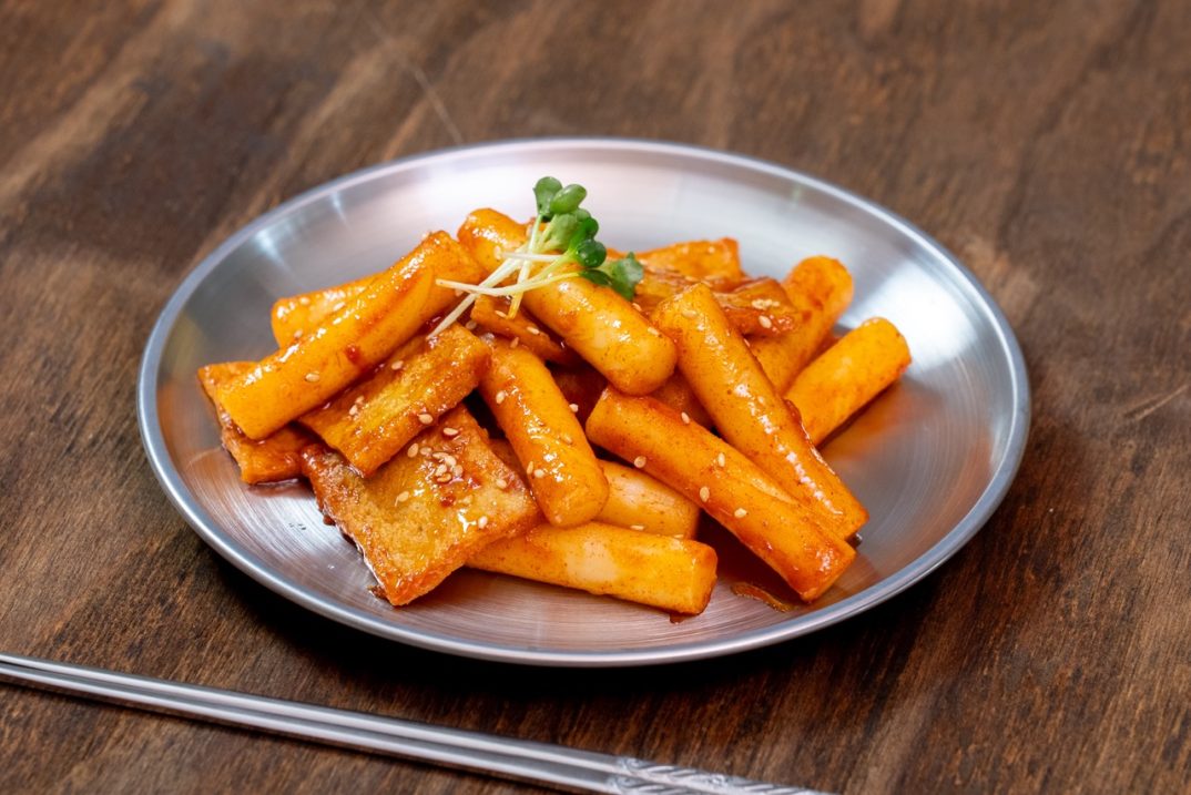 定番の甘辛トッポギに韓国式おでん(魚のすり身を使った練り物)を加えた人気メニューです。もちもちの韓国餅「トック」と、コクのあるコチュジャンソースに、オデンの旨みが溶け込み、より深みのある味わいに仕上がっています。スープを吸ったオデンはジュワッと旨みが広がり、トッポギとの相性も抜群。屋台気分を楽しめる一皿です。