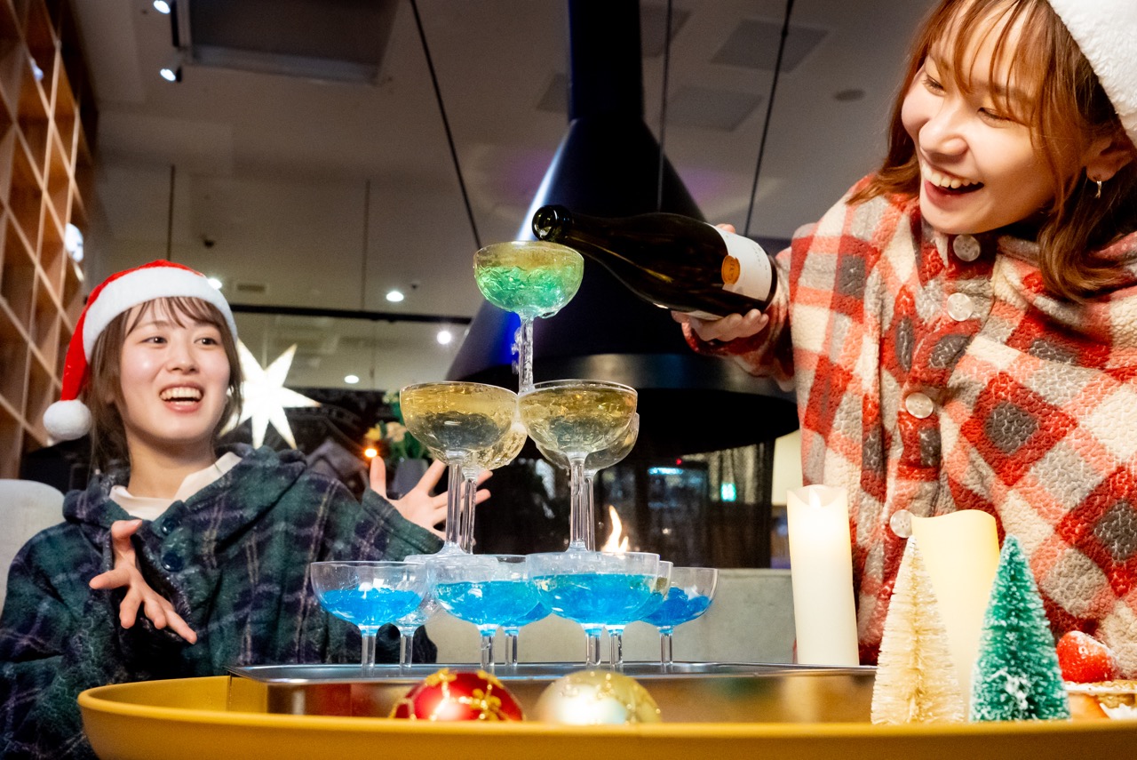 普段はなかなか体験できないシャンパンタワーができるセットをクリスマス限定で貸出・販売します。