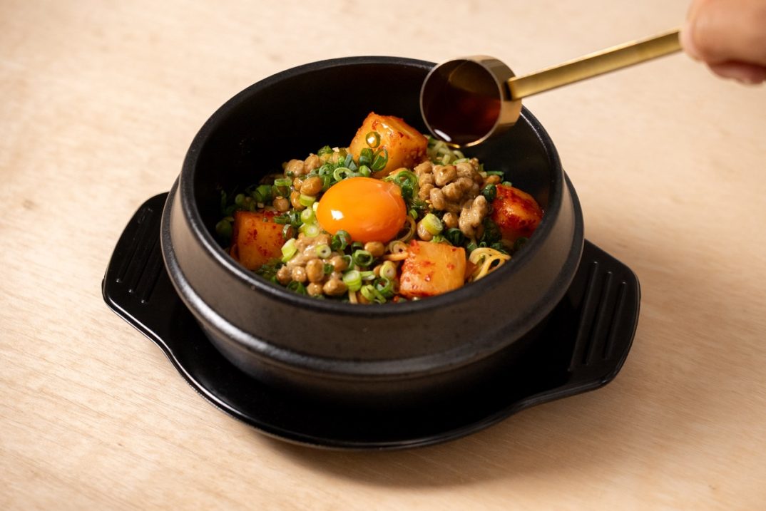 汗をかいた分だけ、うまい!にんにくの香りとパンチのある濃厚ダレが食欲を一気に呼び覚まし、ガツンとくる味わいに、もう一度アツくなる。途中で卵黄を混ぜれば、まろやかさとコクが広がり、もう箸が止まらない。汗も、食欲も、ととのいも。全部まとめてチャージ完了!