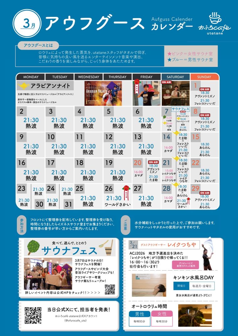 【3月7日(土)】utataneが贈る、食べて、遊んで、ととのう『サウナフェス』開催!!!!